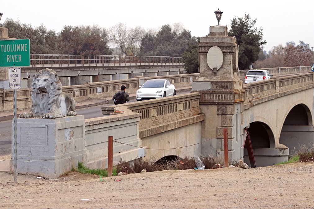 The decorative concrete lions at either end of the bridge will be saved for a new pedestrian plaza that would connect the new bridge with the proposed Tuolumne River Regional Park’s Gateway Parcel and to the Tuolumne River itself.
