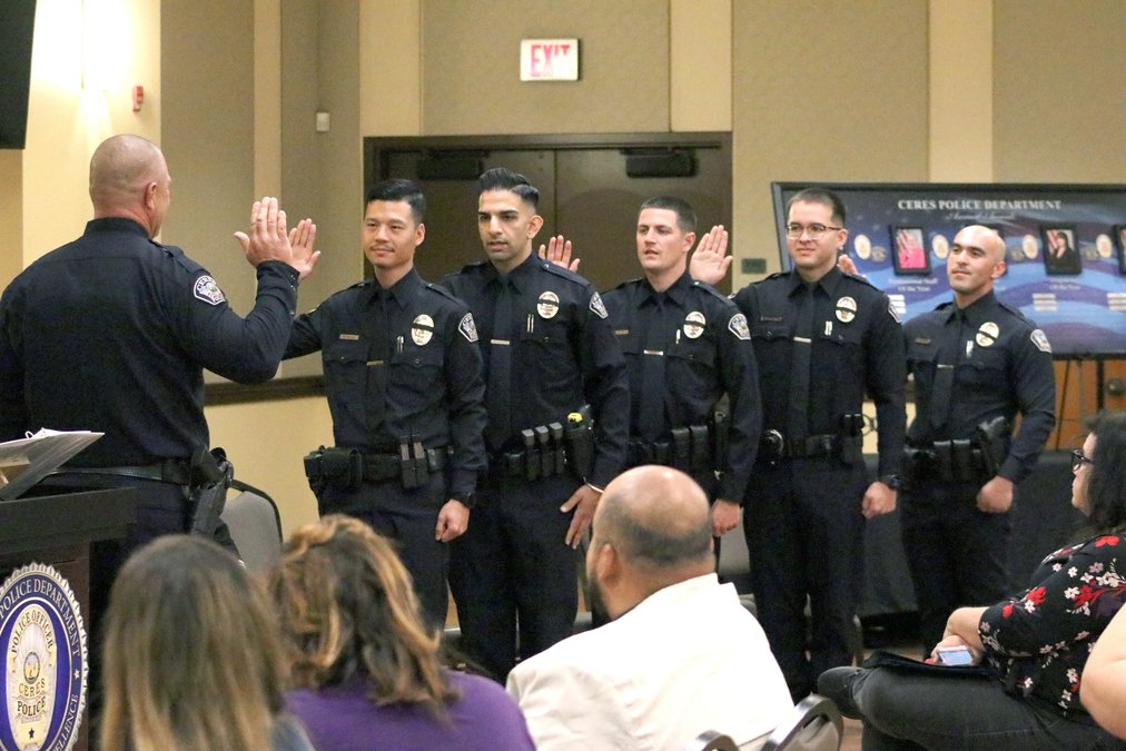 A number of standout employees of the Ceres Police Department were recognized at a special event held Thursday evening while new police officers – some fresh out of the academy – publicly took the oath and had their badges pinned on by loved ones.