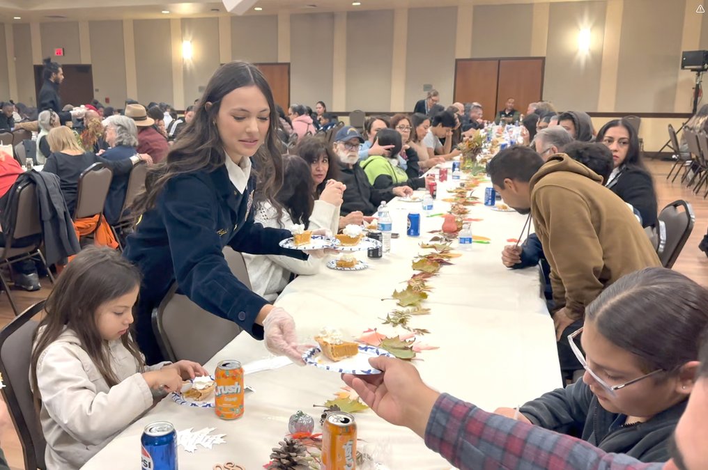 Jose Saldivar, owner of La Cascada Restaurant cooked approximately 20 turkeys donated by Shane Parson of Diamond Bar Arena. Parson also secured 200 pounds of potatoes to be mashed and served. Congressman Adam Gray donated 50 pies to be cut up and served.
